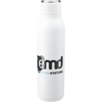 The Marka Copper Vacuum Insulated Bottle features durable, double-wall stainless steel vacuum construction with copper insulation, which allows your beverage to stay cold for 48 hours and hot for at least 12 hours. The construction also prevents condensation on the outside of the bottle. Comes complete with the on-trend, durable, smooth-touching powder coated appearance and a screw-on, spill resistant lid and a durable, zinc-alloy hand loop. Fits most standard car cup holders. Leed's exclusive. 20oz. Dot Pattern