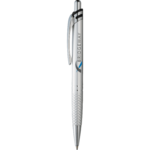 Anodized barrel with diamond etched pattern on bottom barrel. Shiny chrome accents and premium black ballpoint ink cartridge. Twist action mechanism. Laser 360 is available on this style.