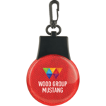 The Flashing Reflector Light features 3 LED light settings (solid, blinking, flashing left to right). Push the button on the back to power it on/off and to switch between settings. Includes a swivel plastic hanging clip.