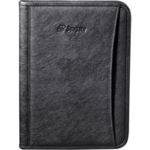 Interior organizer. Front pocket. Clear ID or calculator pocket. Card pocket slots. Elastic pen loop. Includes 8.5" x 11" writing pad. Refills available at leedsworldrefill. Refill item number: 9091-01. Pen not included.